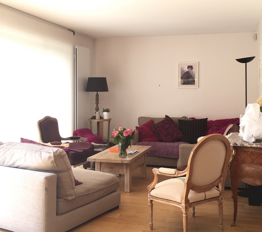 Une très large baie sur le jardin a remplacé les deux portes fenêtres traditionnelles et la cuisine, décloisonnée, forme un vaste ensemble avec le salon donnant sur le jardin.